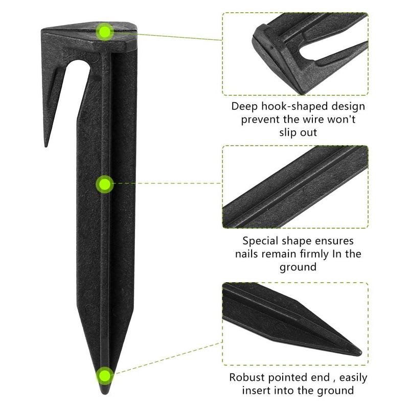 - Vielseitige Anwendung: Geeignet zum Befestigen von Begrenzungskabeln für Rasenmähroboter, zum Sichern von Landschaftsstoffen und zum Verankern von Gartendekorationen.
