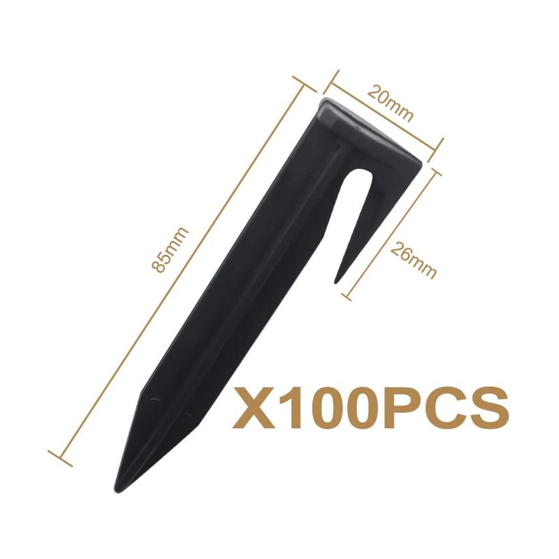 Sichern Sie Ihre Garteninstallationen mit diesem Satz von 100 Kunststoff-Bodenklammern mit einer Länge von je 8,5 cm. Diese haltbaren Klammern wurden für die Verankerung von Begrenzungskabeln, Landschaftseinfassungen und verschiedene Gartenanwendungen entwickelt und gewährleisten Stabilität und Langlebigkeit für Ihre Projekte im Freien.