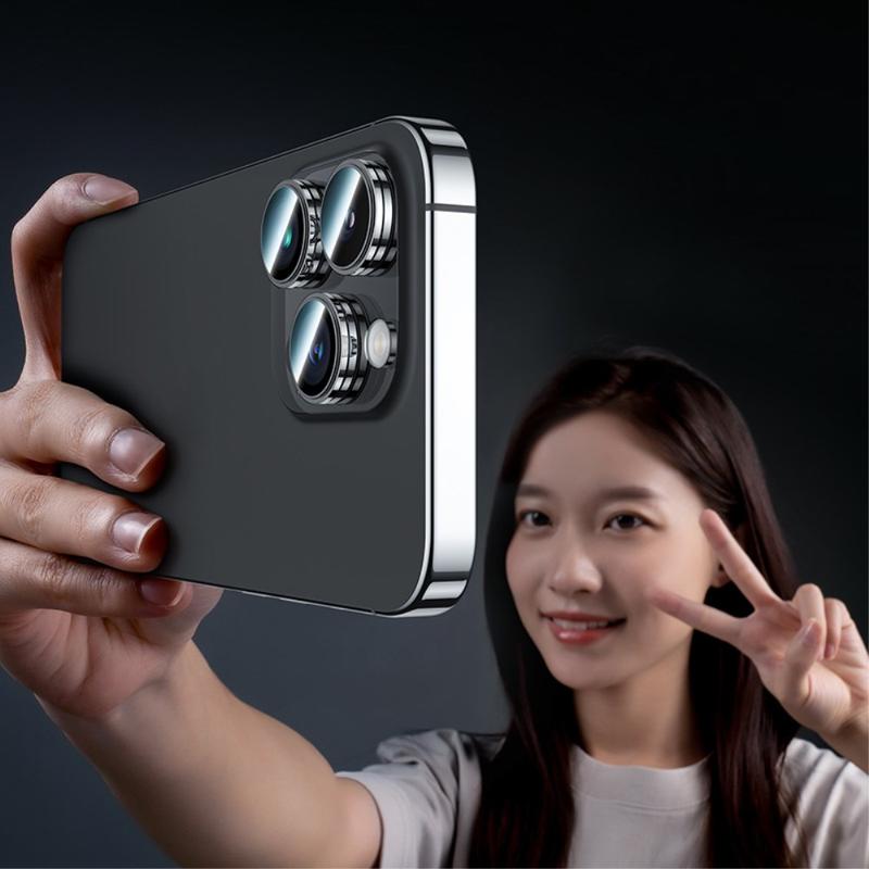 • BENKS 3Pcs / Set Kamera-Objektiv-Schutz für iPhone 15 Pro / 15 Pro Max Corming Grila Glas Objektiv Film mit Aluminium-Legierung Rahmen - Schwarz