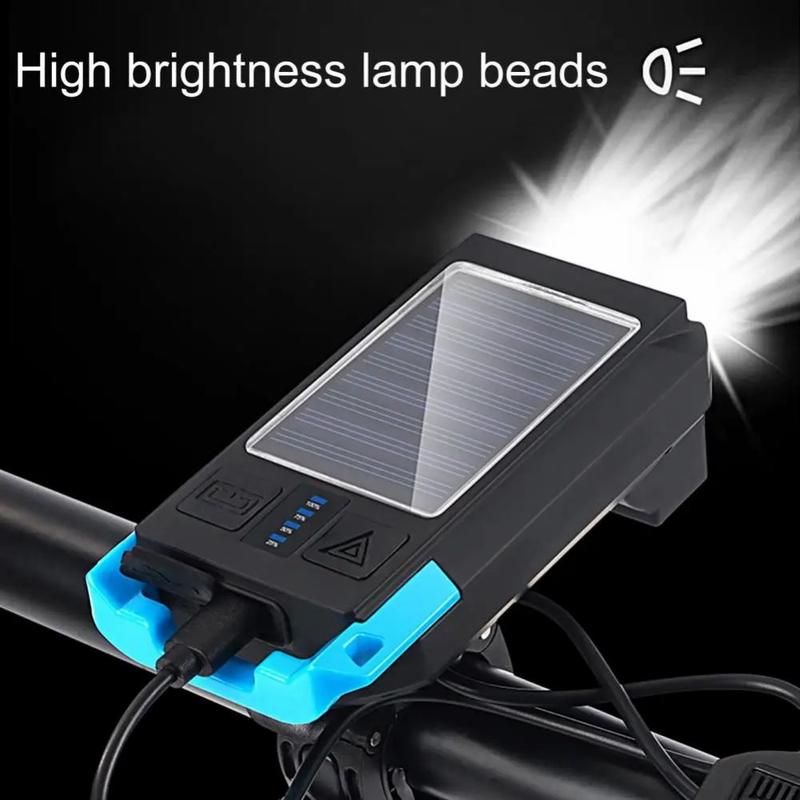 BG-1706 USB+Solar Wiederaufladbare Fahrradlichter Wasserdicht 6 Lichtmodi Fahrrad Doppelscheinwerfer mit Horn Alarm - Rot