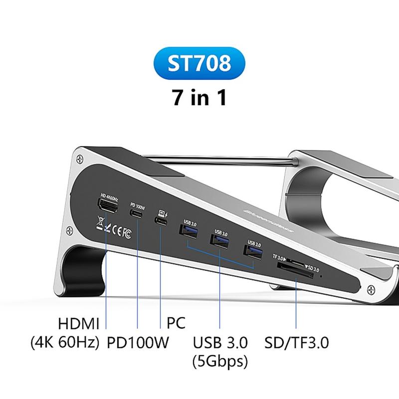 • Blueendless ST708 7-in-1-Laptopständer mit USB-Hub - 4K@60Hz HDMI, 100 W PD-Aufladung, 3xUSB 3.0, TF-Kartenleser, Laptop-Erhöhung aus Aluminium