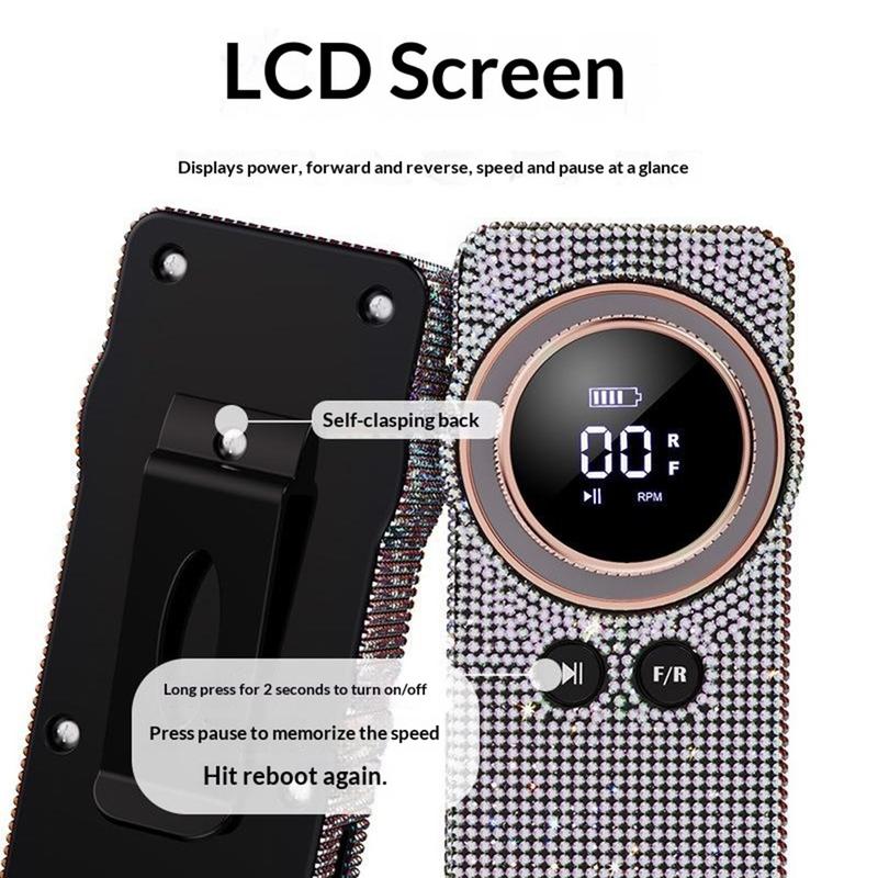 - LCD-Display für Drehzahl, Akkustand, Drehrichtung und Pausenstatus