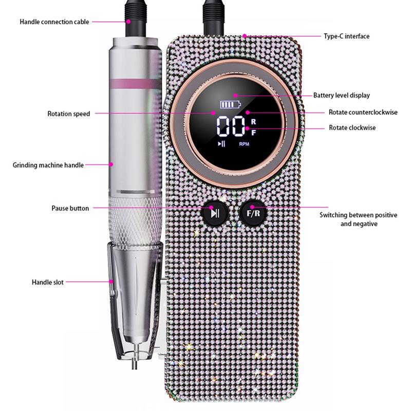 BLUEQUE BQ-108 Elektrische Nagelfeile im Diamant-Design für Gel und Acryl - 35.000 U/min, wiederaufladbar, mit LCD-Display