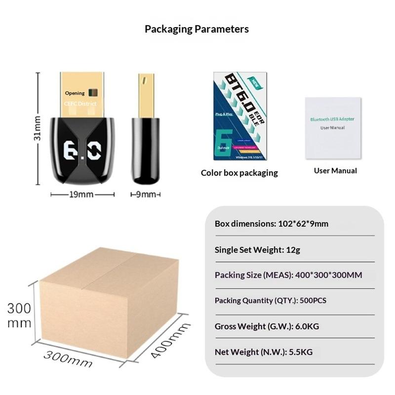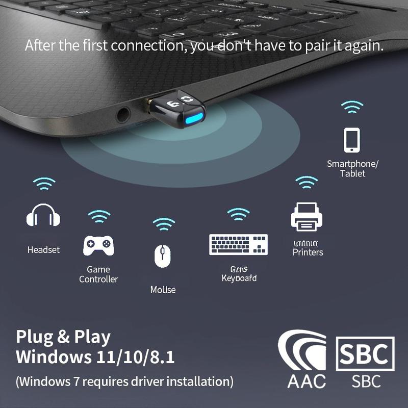 • Bluetooth 6.0 USB-Adapter / Drahtloser Audioempfänger und -sender für Windows 8.1, 10, 11