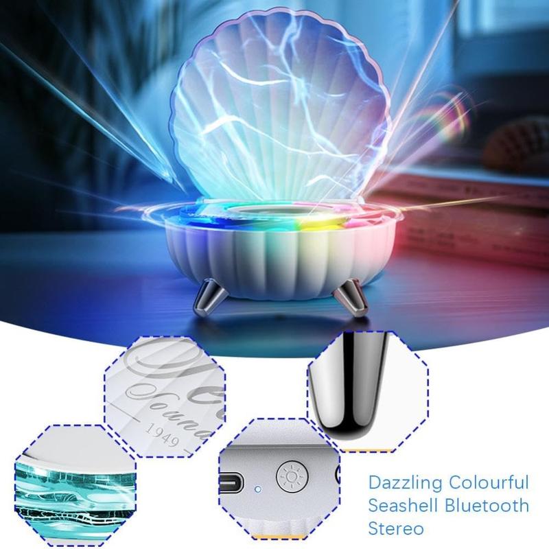 Verbessern Sie Ihr Klangerlebnis und Ihre Einrichtung mit dem Bluetooth-Lautsprecher in Muschelform, der für Stil und hochwertigen Klang entwickelt wurde. Dieser Lautsprecher kombiniert kräftige Bässe mit RGB-Umgebungsbeleuchtung und sorgt so für ein beeindruckendes audiovisuelles Erlebnis. Die Bluetooth-Konnektivität gewährleistet die Kompatibilität mit verschiedenen Geräten, und die einzigartige Muschelform verleiht jeder Umgebung Eleganz.