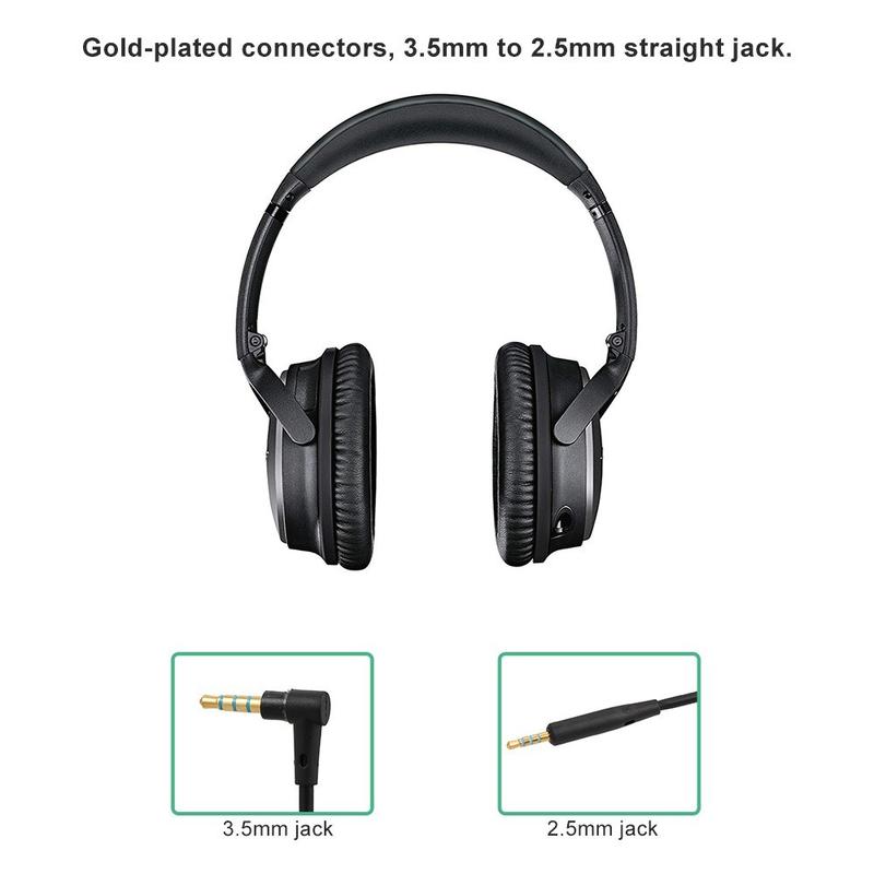 Dieses Line-Control-Audiokabel ist perfekt für die BOSE QC25 Kopfhörer geeignet. Vergoldete Anschlüsse, 3.5mm auf 2.5mm gerade Buchse, die langlebig und stabil ist. Eingebautes Mikrofon und Lautstärke Line-Control-Funktion macht es bequem für den Einsatz. Hochwertiges TPE-Kabelmaterial sorgt für eine lange Lebensdauer und Verhedderungsfreiheit. Es hat auch eine hervorragende Klangqualität und eine hohe Kältetoleranz-Funktion. Außerdem ist die Kabellänge von 140 cm ausreichend für den täglichen Gebrauch. Dies ist definitiv ein besserer Begleiter für Ihre BOSE QC25 Kopfhörer.