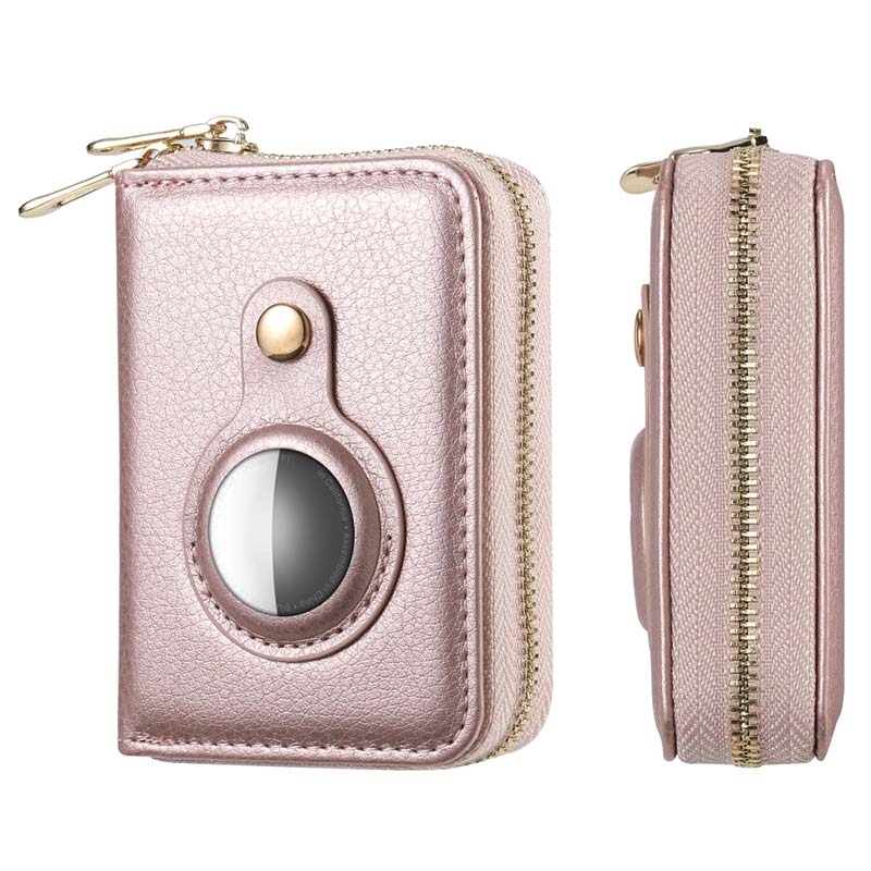 Brieftaschenhülle mit Reißverschluss, Apple AirTag 1/2-Halter und RFID - Rosa
