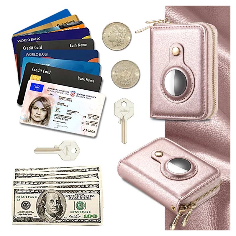 • Brieftaschenhülle mit Reißverschluss, Apple AirTag 1, AirTag 2-Halter und RFID
