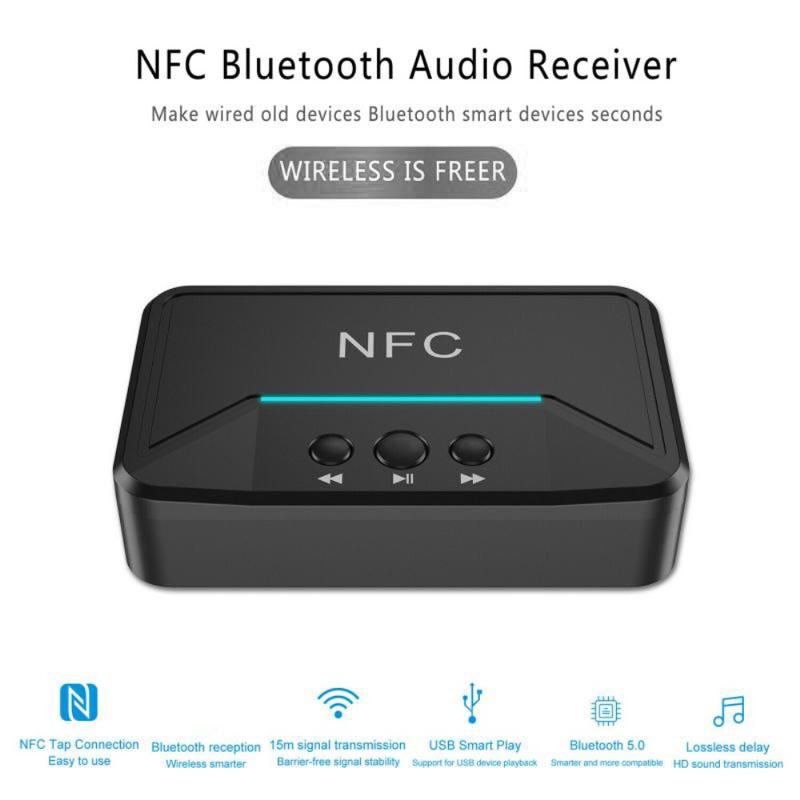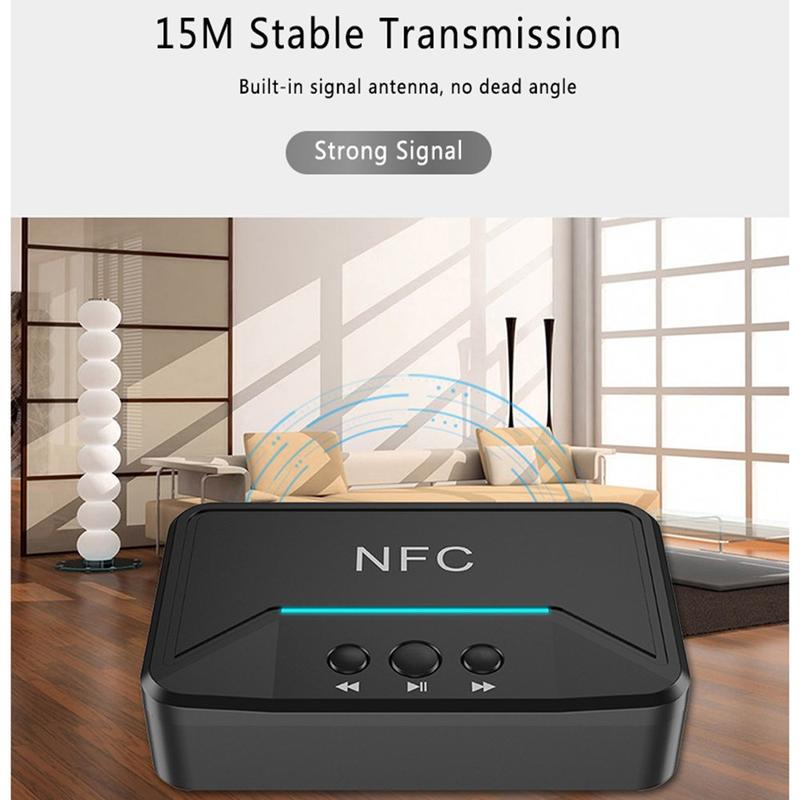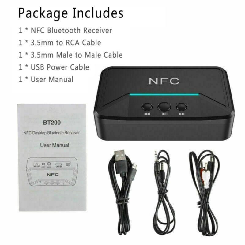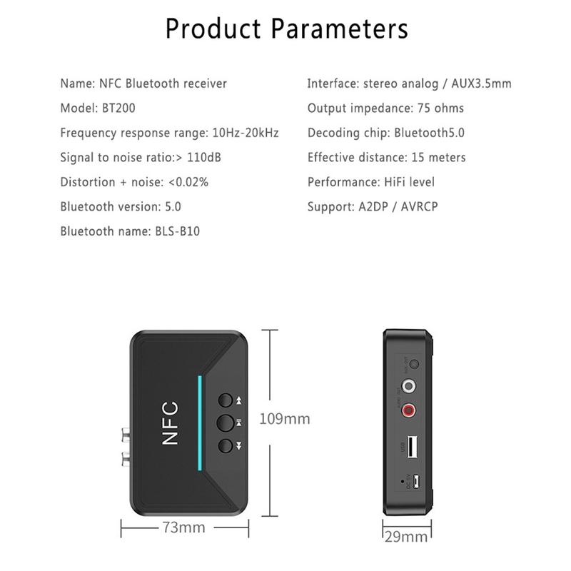 • BT200 NFC Bluetooth 5.0 Audio-Empfänger - AUX 3.5mm & RCA Adapter mit A2DP, USB Power, Auto On/Off für Auto & Home Stereo (15 m Reichweite)