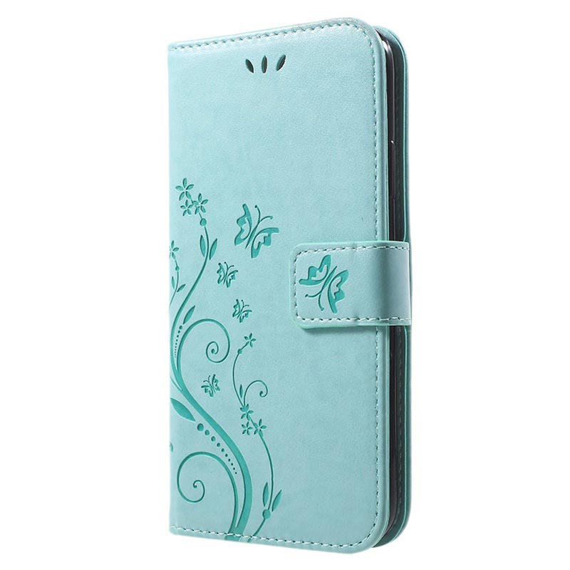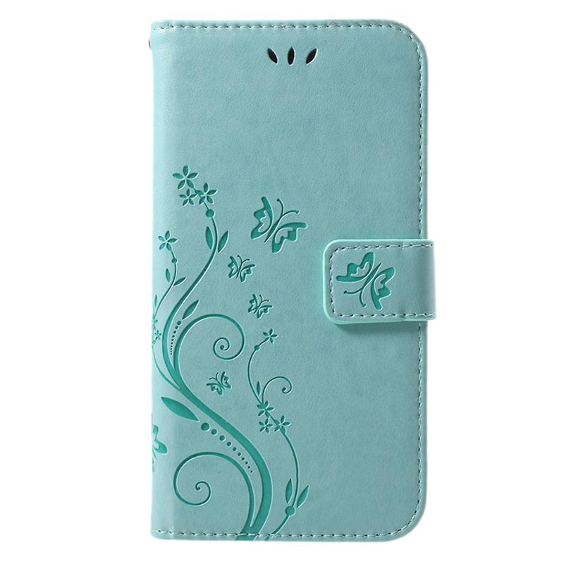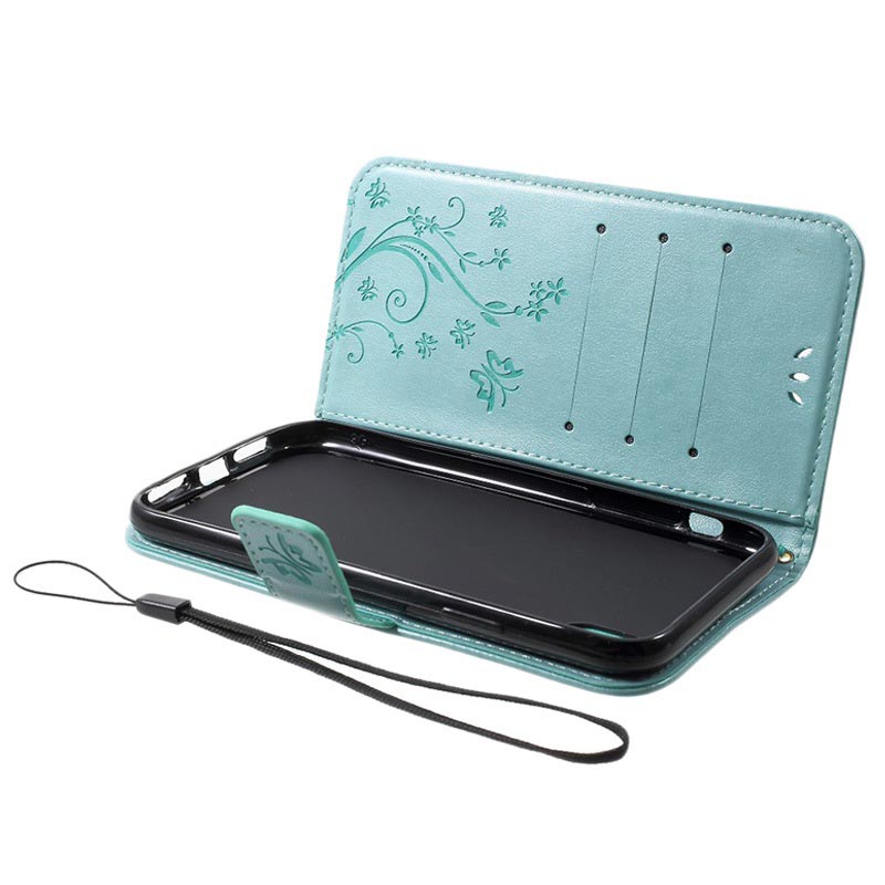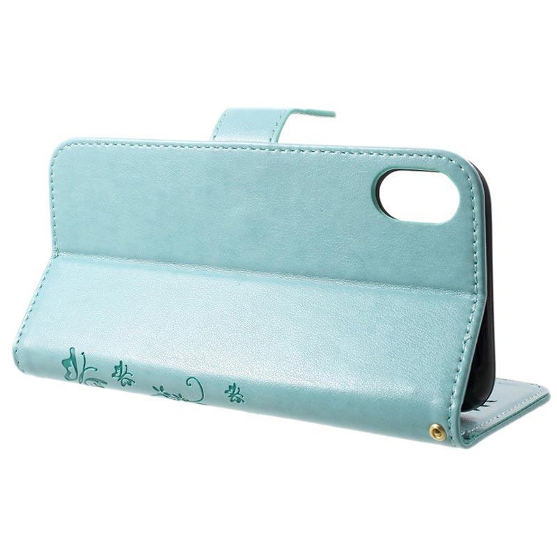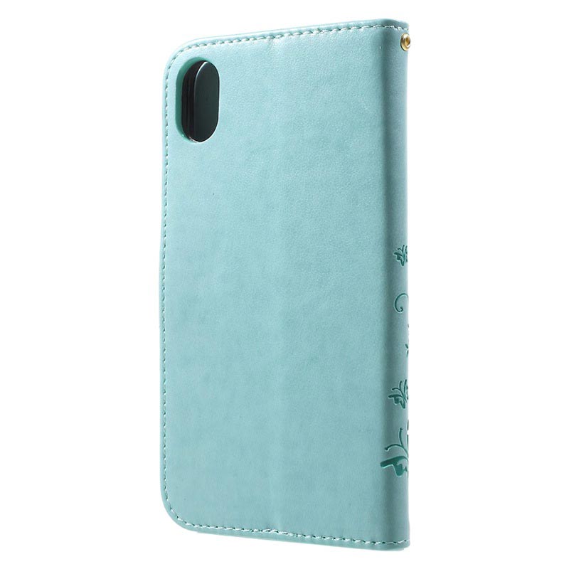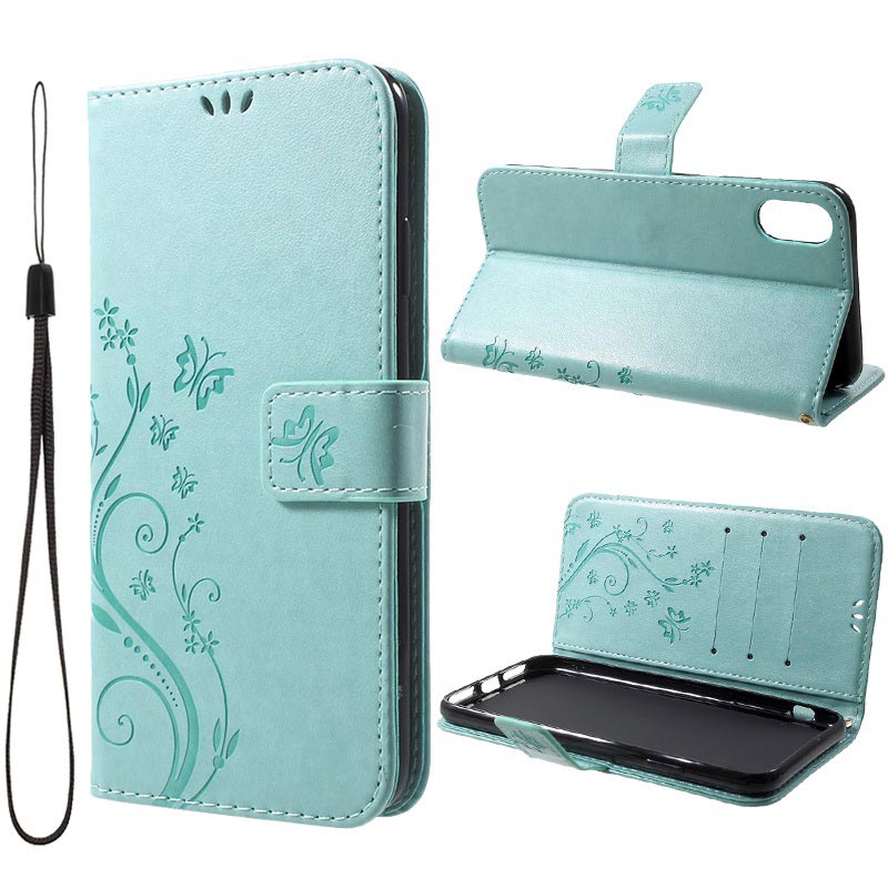 Butterfly Serie iPhone XR Wallet Schutzhülle - Zyan