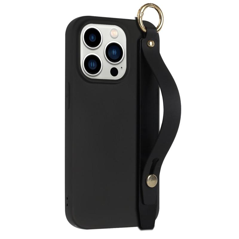 For iPhone 14 Pro Candy Color TPU Matte Phone Cover Hand Strap Kickstand Drop-proof Back Case