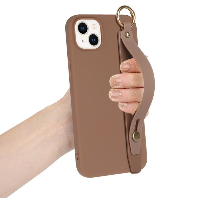 For iPhone 14 Plus Candy Color Phone TPU Cover Anti-drop Anti-scratch Case with Hand Strap Kickstand