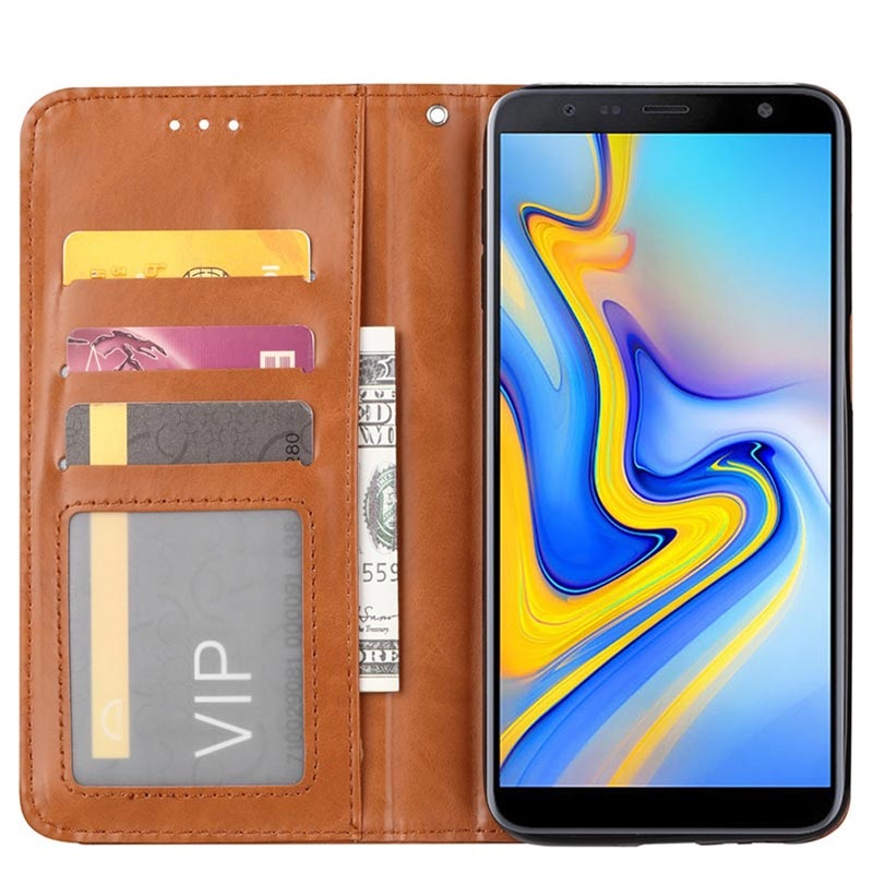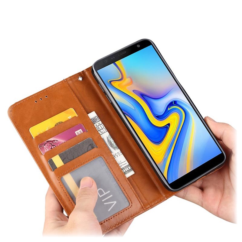 - Eine Premium-Brieftasche mit Front-Kartensteckplatz für Samsung Galaxy J6+