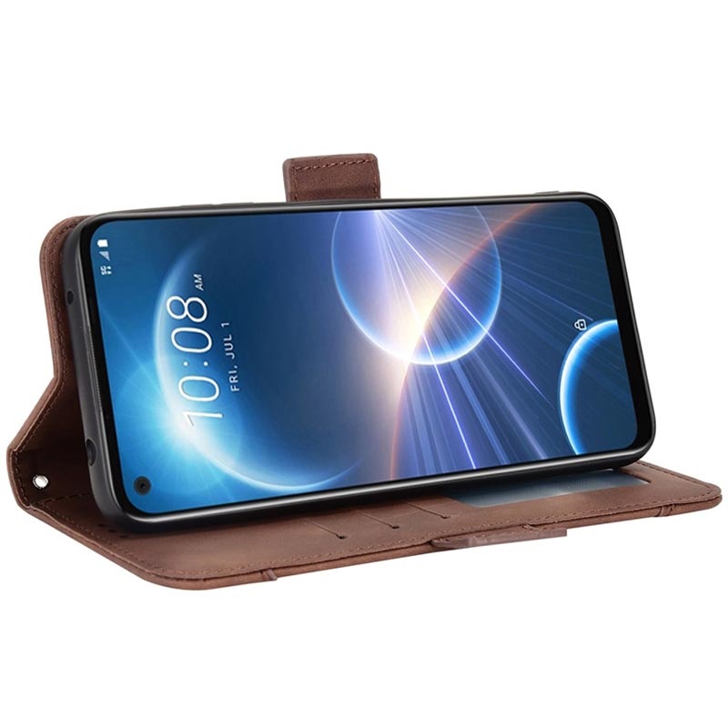 HTC Desire 22 Pro Wallet Hülle mit Kartenhalter - Braun