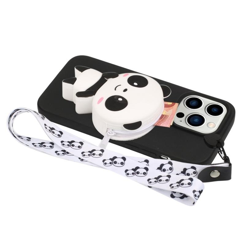 For iPhone 14 Pro Max TPU Phone Case Cartoon Design Shockproof Cover Silicone Zippered Wallet Phone Case with Lanyard
