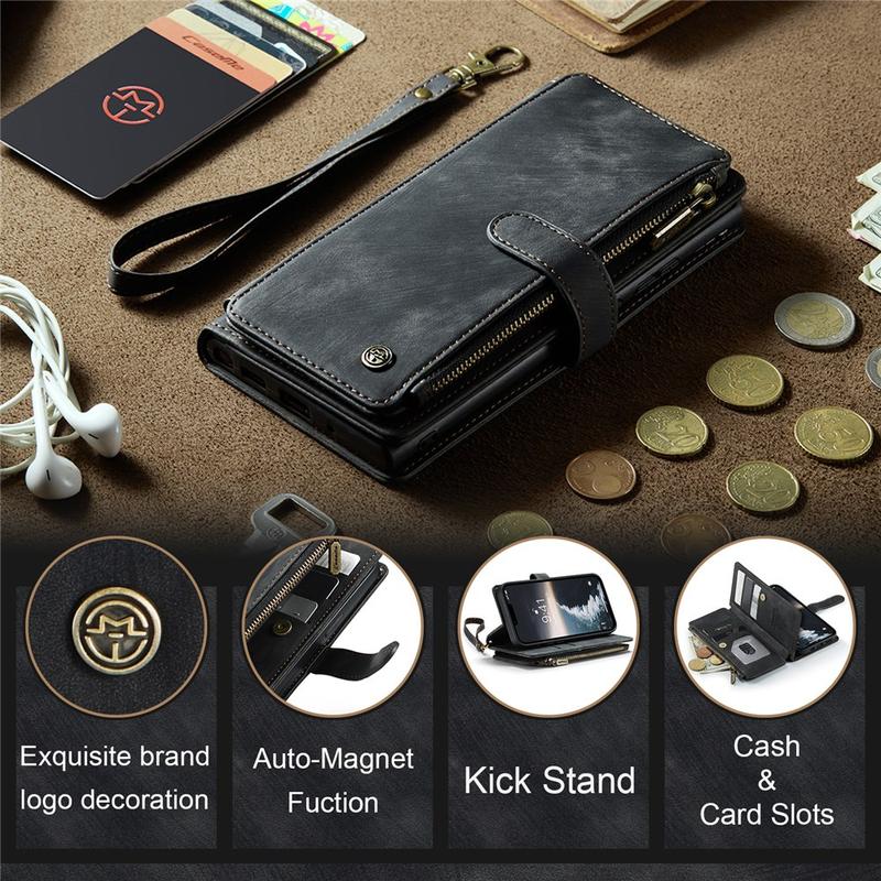 Die Caseme C30 multifunktionale Brieftaschenhülle für das iPhone 15 bietet außergewöhnlichen Rundumschutz und ein exklusives, raffiniertes Design. Diese elegante Hülle besteht aus hochwertigem Polyurethan, verstärkt mit einer stoßfesten TPU-Innenhülle, die sich perfekt an Ihr iPhone 15 anschmiegt. Die Caseme C30 Brieftasche ist mit zahlreichen Kartenfächern, einem großen Geldfach innen und einer Außentasche mit Reißverschluss ausgestattet, die alle durch einen sicheren Magnetverschluss geschützt sind.