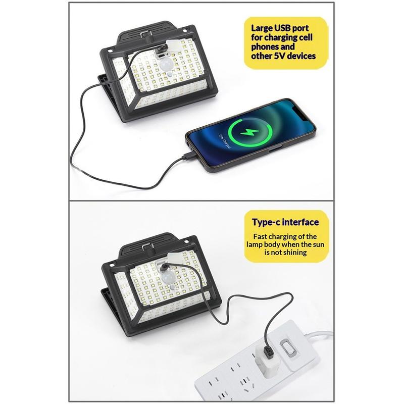 CCP087 190-LED-Solar-Bewegungsmelder - wasserdichte IP65-Außen-Gartenlampe mit Solarpanel und Typ-C-Ladeanschluss
