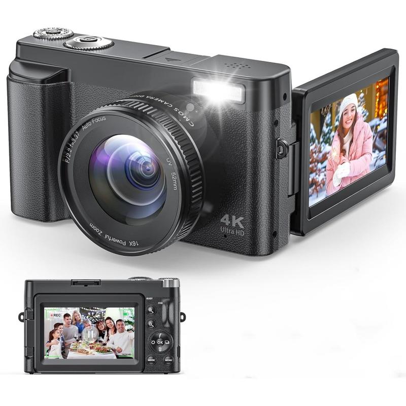 • CD01 4K-Digitalkamera mit 3,0-Zoll-Flip-Screen - 16fach-Zoom-Fotografie- und Vlogging-Kamera mit 64-GB-Speicherkarte