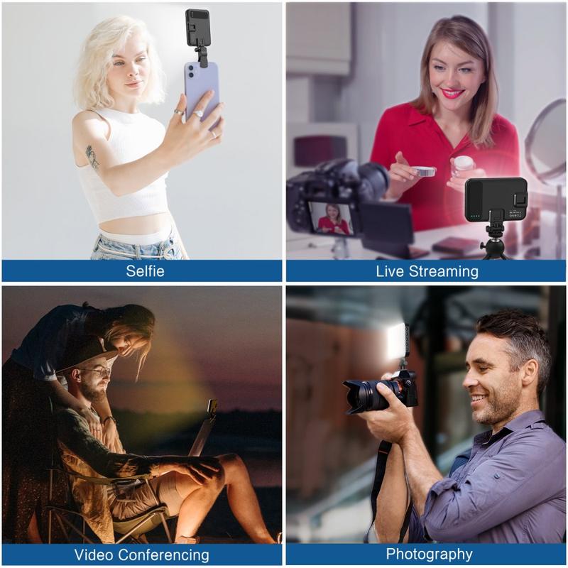 Ausgestattet mit einem 2200-mAh-Akku bietet dieses LED-Aufhelllicht einen längeren Betrieb für Vlogging, Streaming oder Fotosessions ohne ständiges Aufladen.