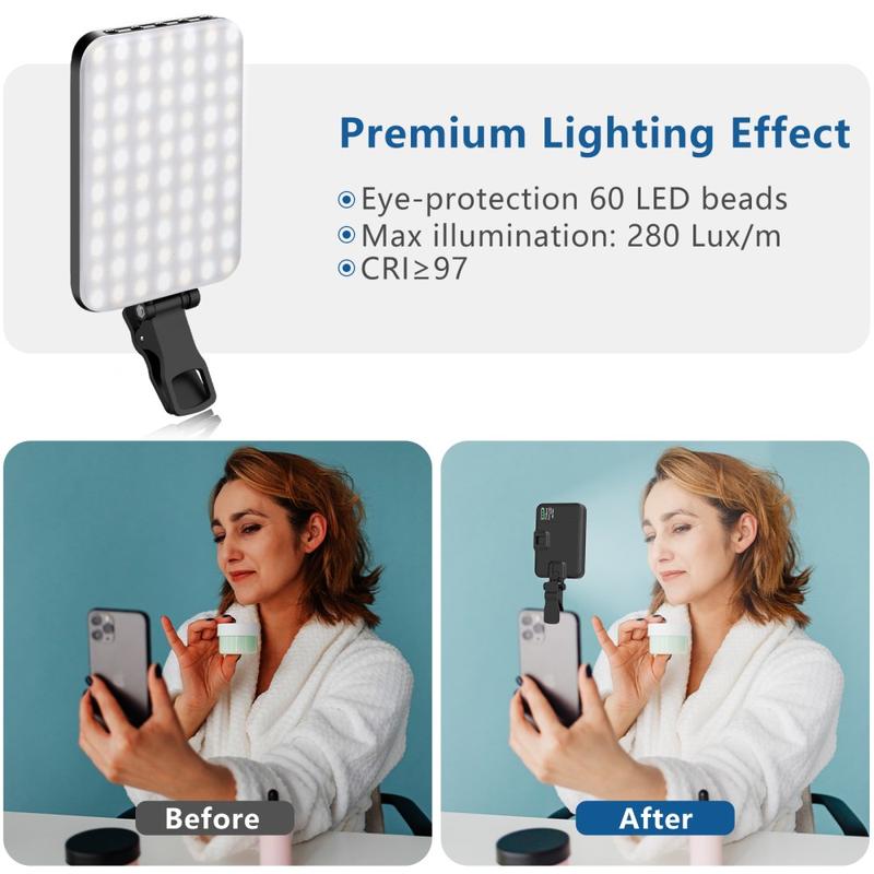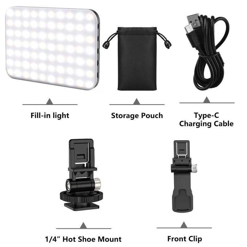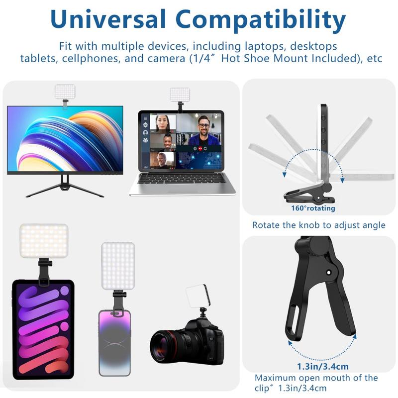 Wiederaufladbares, dimmbares 60-LED-Fülllicht - 3-Modus Selfie- und Live-Streaming-Videoleuchte für Telefon, Kamera und Computer