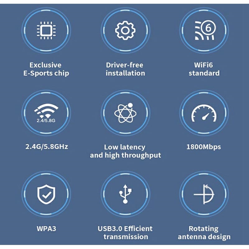 Erweitern Sie Ihren PC oder Laptop mit ultraschnellen und stabilen Verbindungen mit dem COMFAST CF-952AX V2 WiFi 6 USB Adapter. Mit einer Dual-Band-Geschwindigkeit von bis zu 1800 Mbit/s sorgt dieser Plug-and-Play-Adapter für niedrige Latenzzeiten und eine starke Signalabdeckung - perfekt für Streaming, Spiele und Remote-Arbeit.