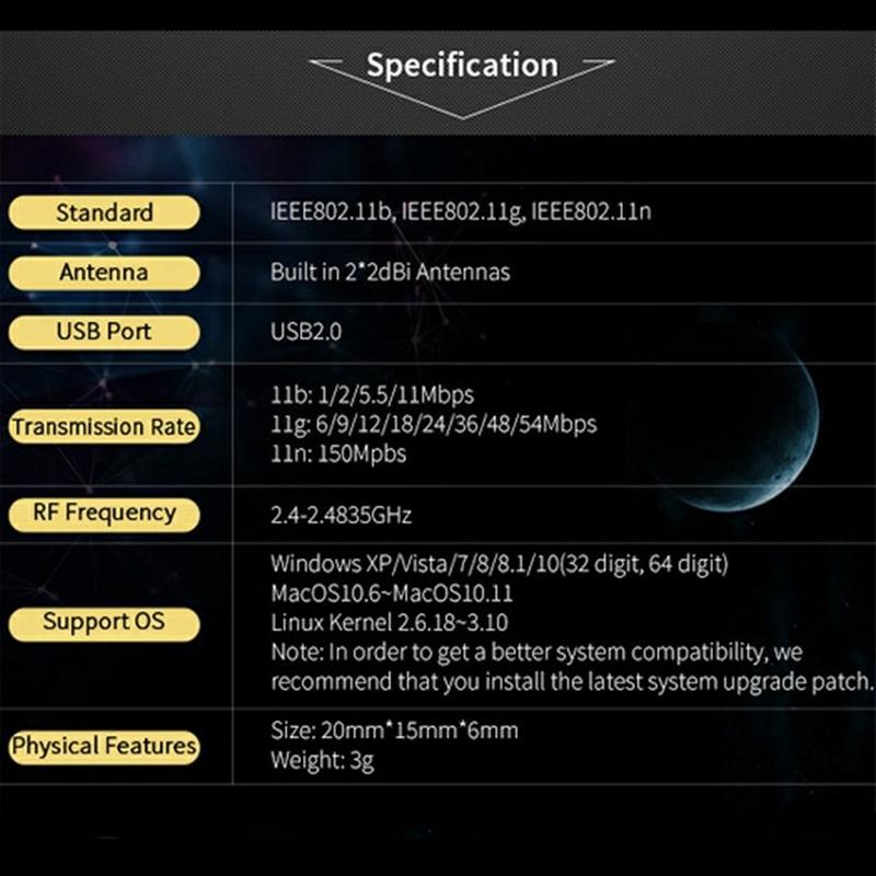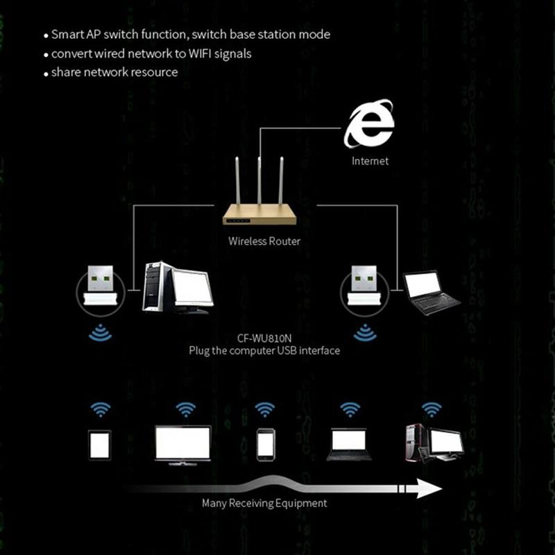 • Comfast CF-WU810N Dual-Band USB WiFi Adapter - 150Mbps Wireless Netzwerkkarte für Desktop & Laptop