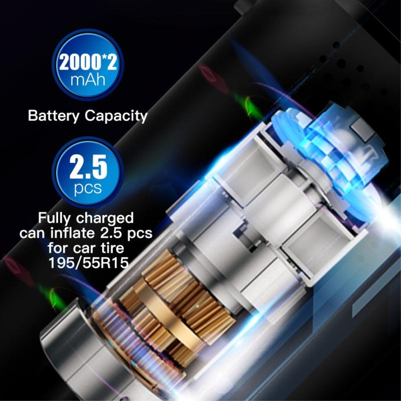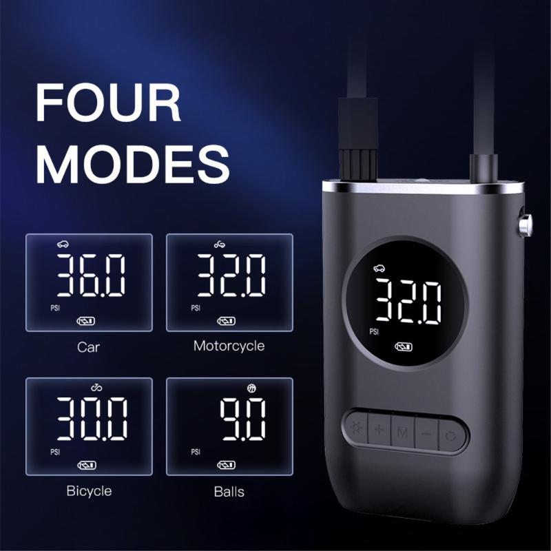 • CQB-3668 Tragbarer, wiederaufladbarer Reifenfüller mit Digitalanzeige und LED-Licht - Handluftpumpe