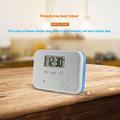 - Fünf programmierbare Alarme - Stellen Sie bis zu 5 tägliche Erinnerungen im 24-Stunden- oder 12-Stunden-Modus ein; jeder Alarm dauert 60 Sekunden und stoppt bei jedem Tastendruck.