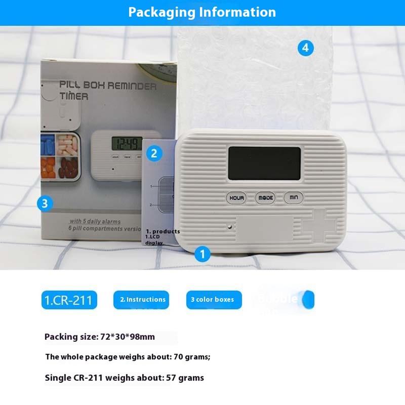 - Mit 62 g wiegt der CR-211 weniger als zwei AA-Batterien, aber seine sechs Fächer fassen etwa 30 Tabletten durchschnittlicher Größe - genug für eine ganze Woche mit zweimal täglicher Einnahme.