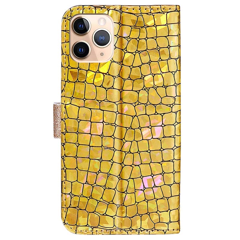 Croco Bling Serie iPhone 13 Pro Wallet Hülle - Gold