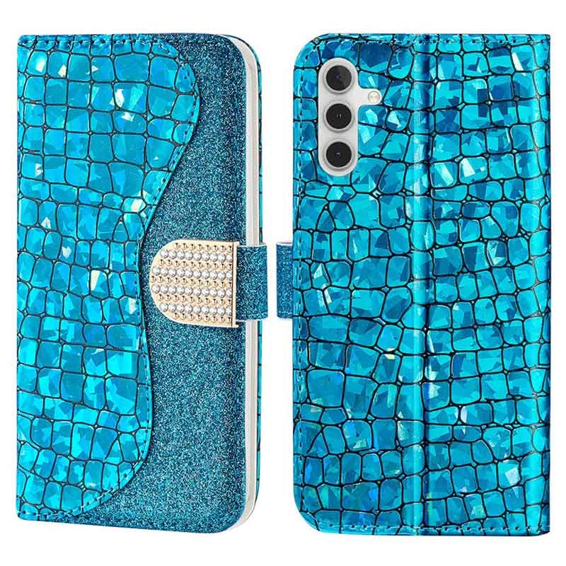 Croco Bling Serie Samsung Galaxy A34 5G Wallet Hülle - Blau