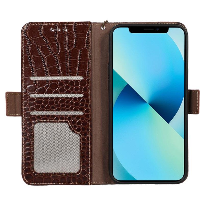 Crocodile Serie Lederhülle mit Geldbörse mit RFID für iPhone 14