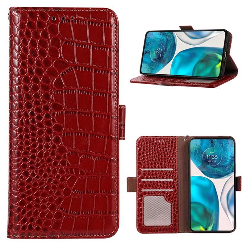 - Crocodile Serie Lederhülle mit Geldbörse für Motorola Moto E22, Moto E22i