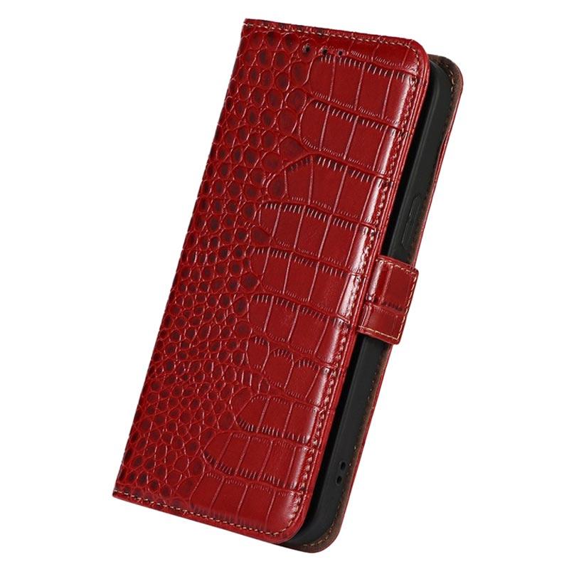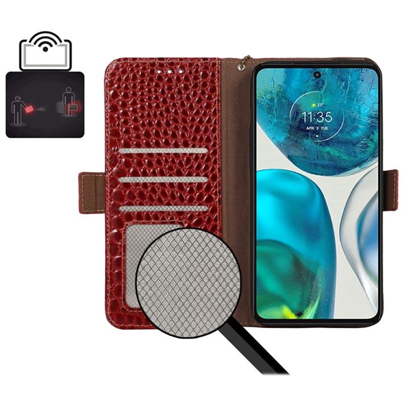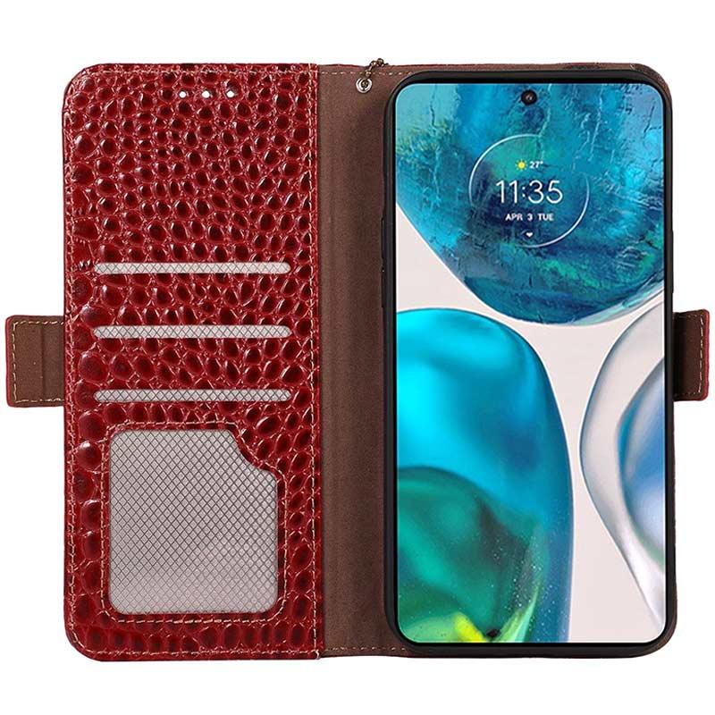 Crocodile Serie Motorola Moto E22/E22i Lederhülle mit Geldbörse mit RFID - Rot