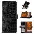 Crocodile Serie Motorola Moto G53 Lederhülle mit Geldbörse mit RFID - Schwarz