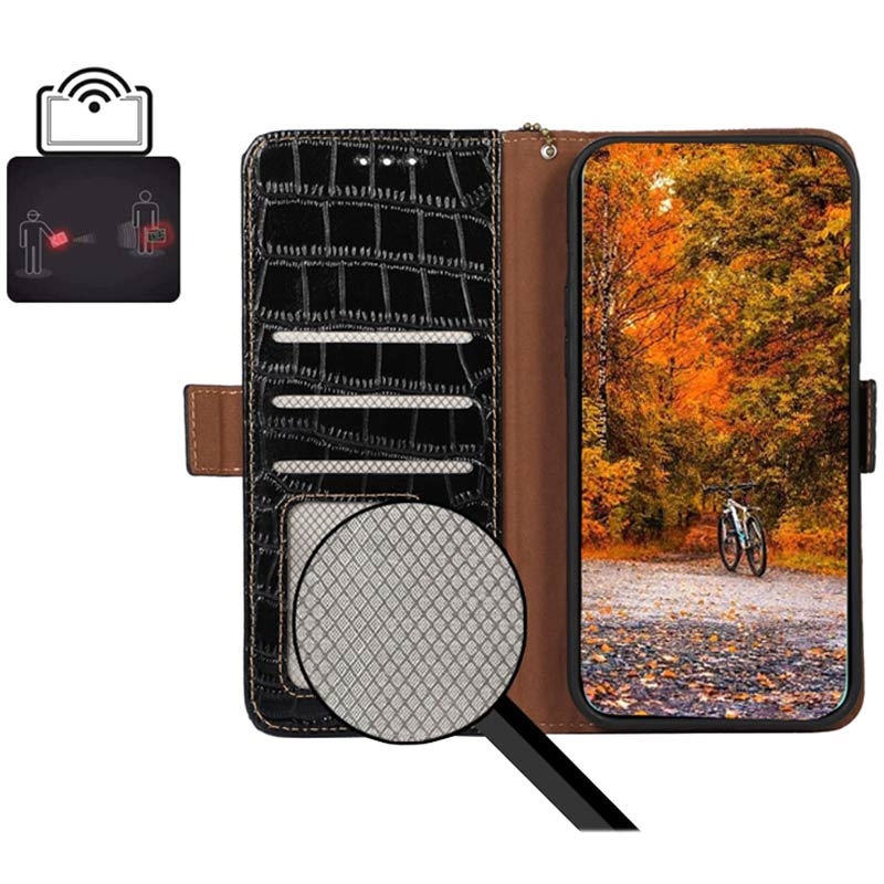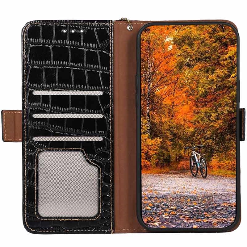 • Crocodile Serie Lederhülle mit Geldbörse mit RFID für Motorola Moto G53