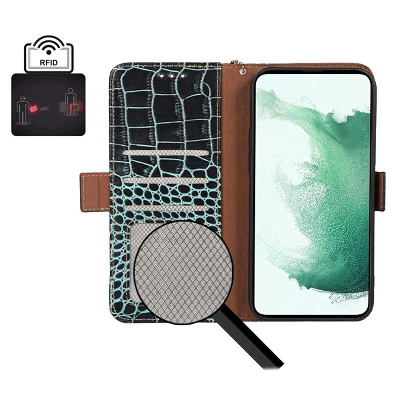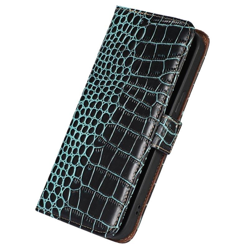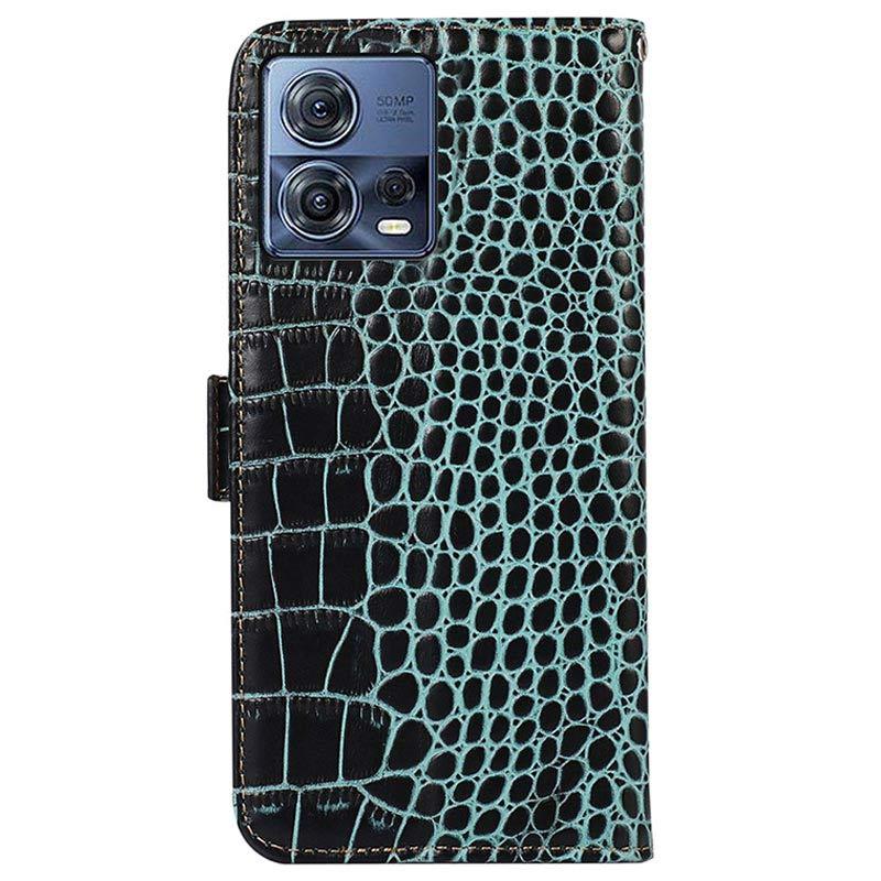 Crocodile Serie Motorola Moto S30 Pro Lederhülle mit Geldbörse mit RFID - Grün