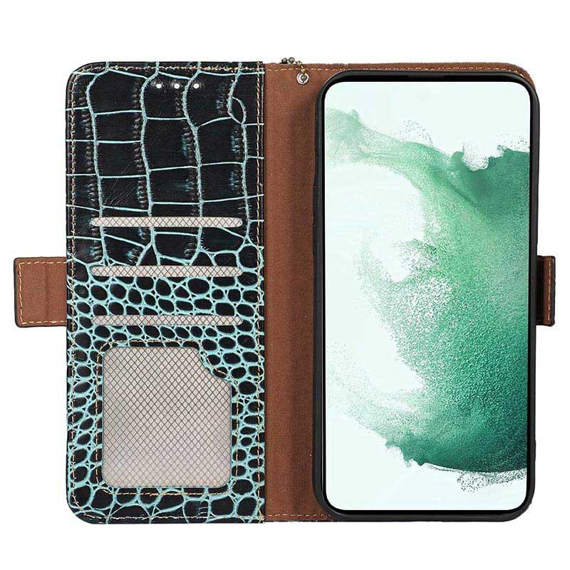 • Crocodile Serie Lederhülle mit Geldbörse mit RFID für Motorola Moto S30 Pro