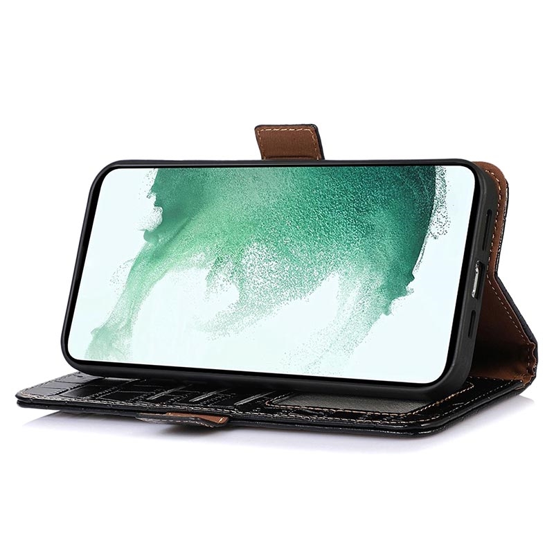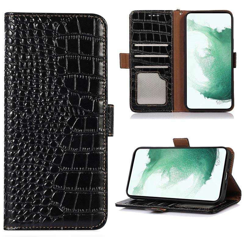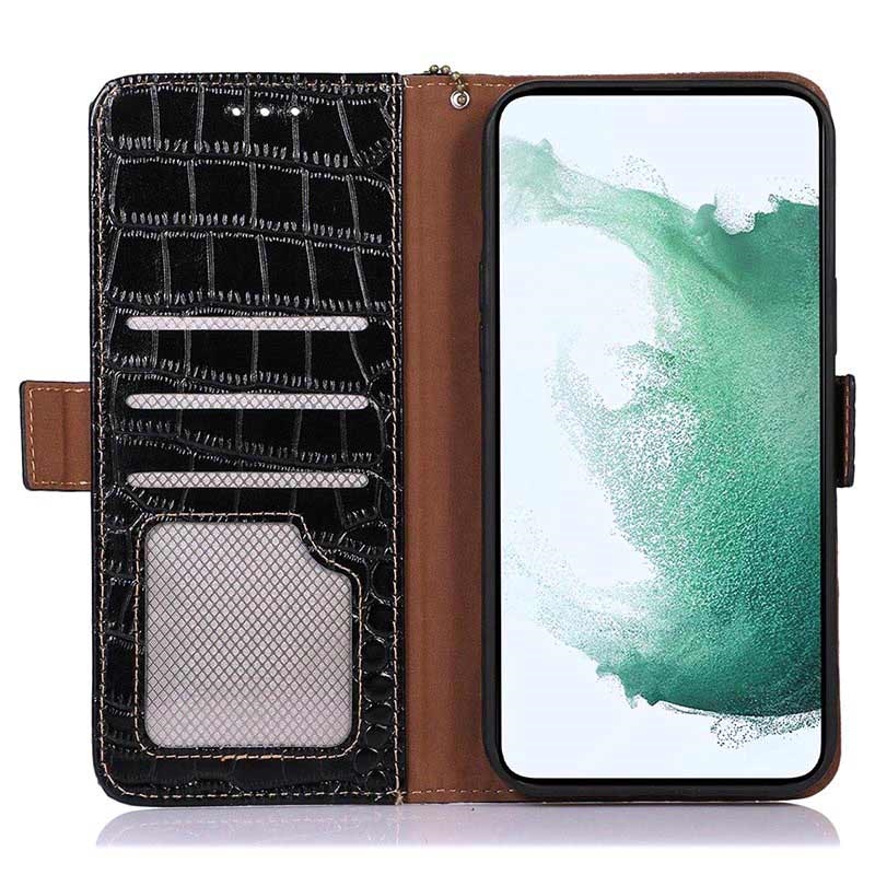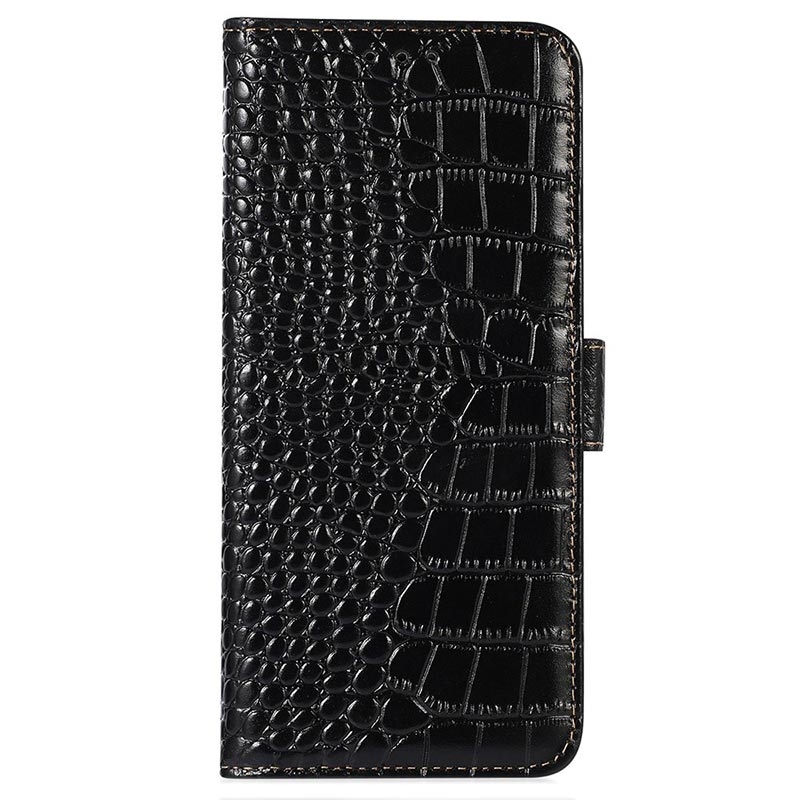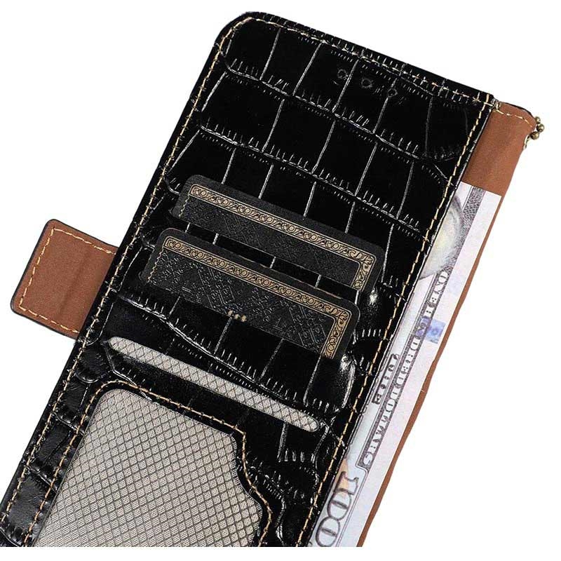 Crocodile Serie Motorola Moto G32 Lederhülle mit Geldbörse mit RFID - Schwarz