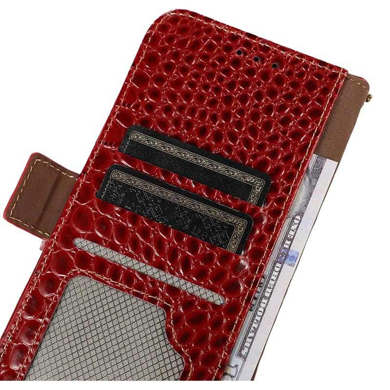 Crocodile Serie Nokia G400 Lederhülle mit Geldbörse mit RFID - Rot