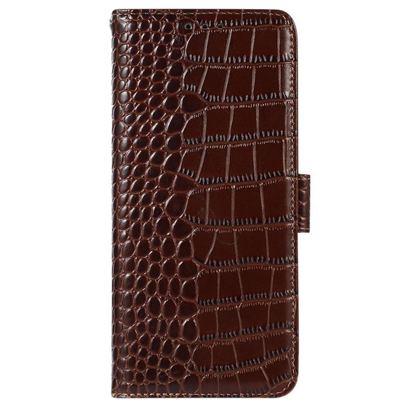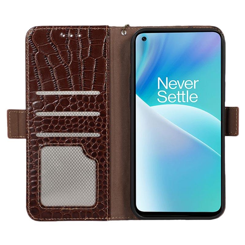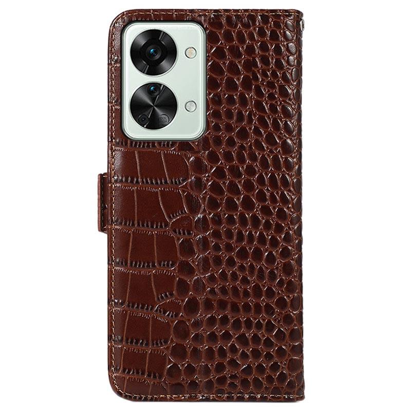Crocodile Serie OnePlus Nord 2T Lederhülle mit Geldbörse mit RFID - Braun