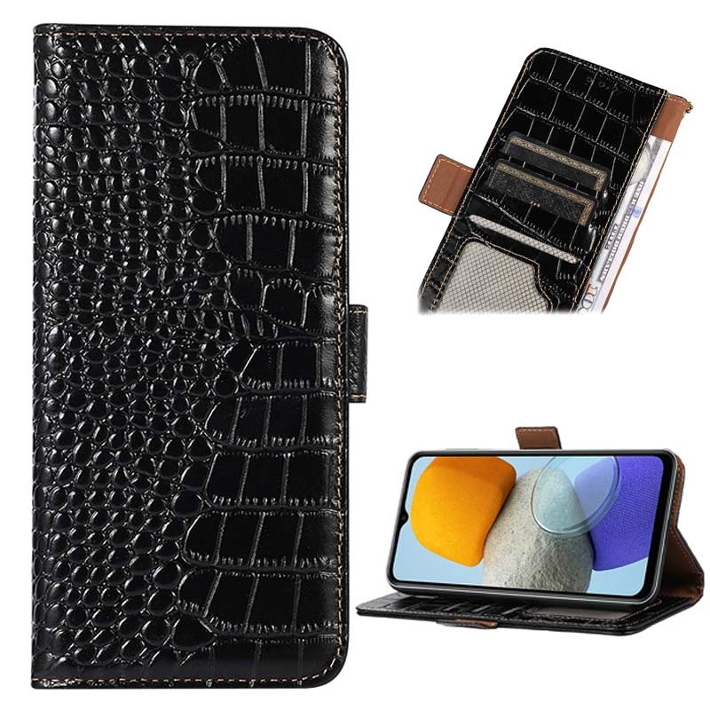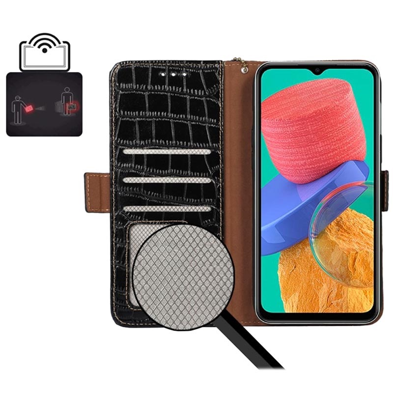 Crocodile Serie Lederhülle mit Geldbörse mit RFID für Samsung Galaxy M33