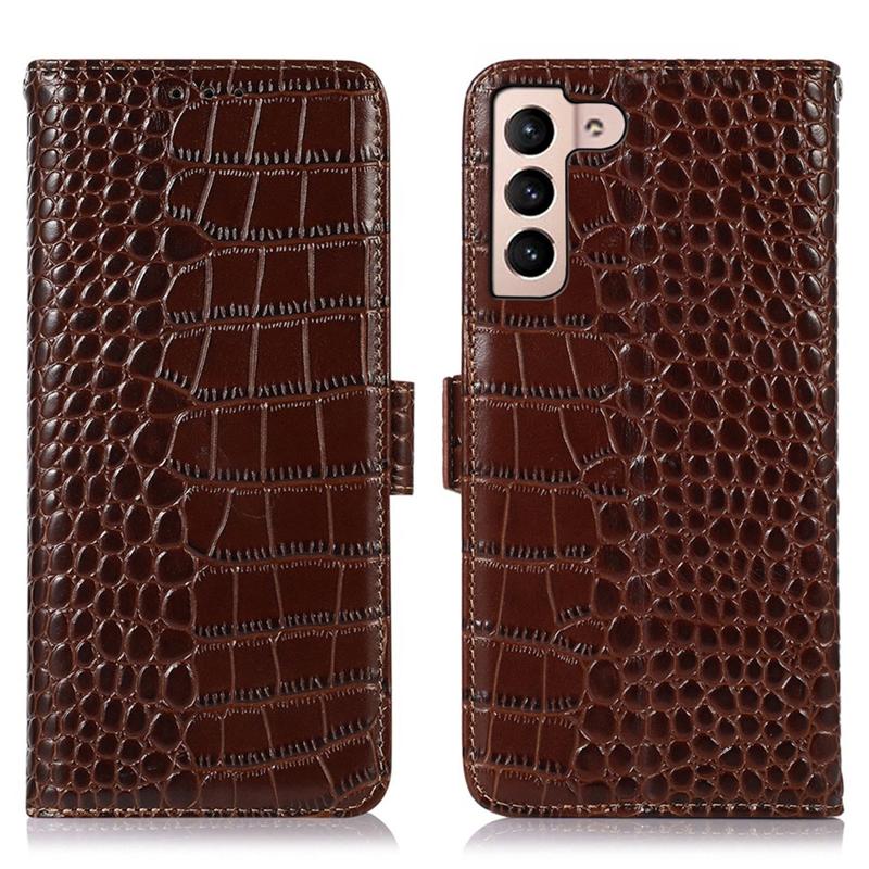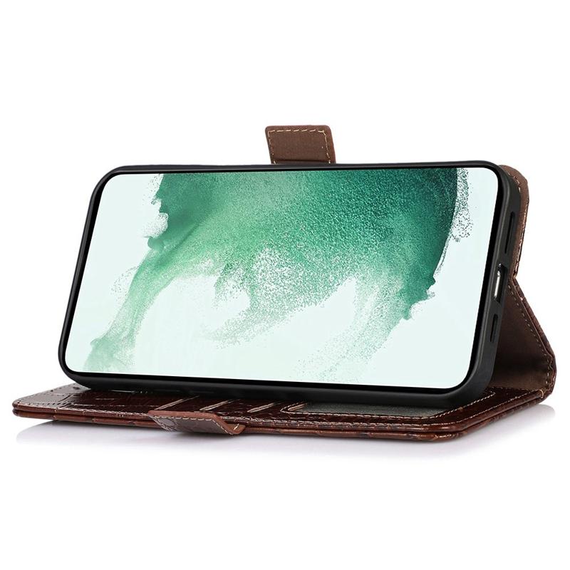 • Crocodile Serie Lederhülle mit Geldbörse mit RFID für Samsung Galaxy S23 5G