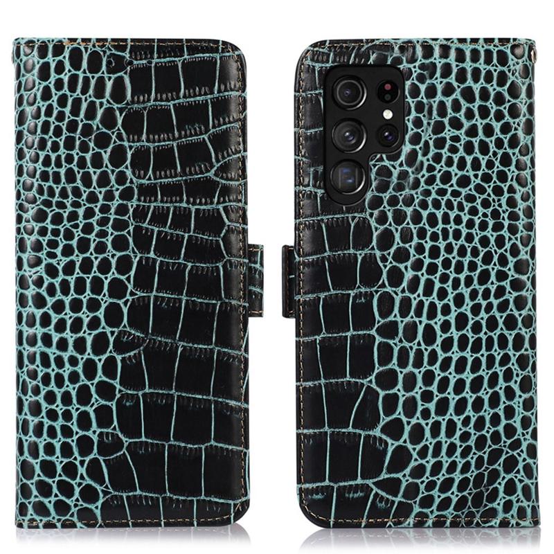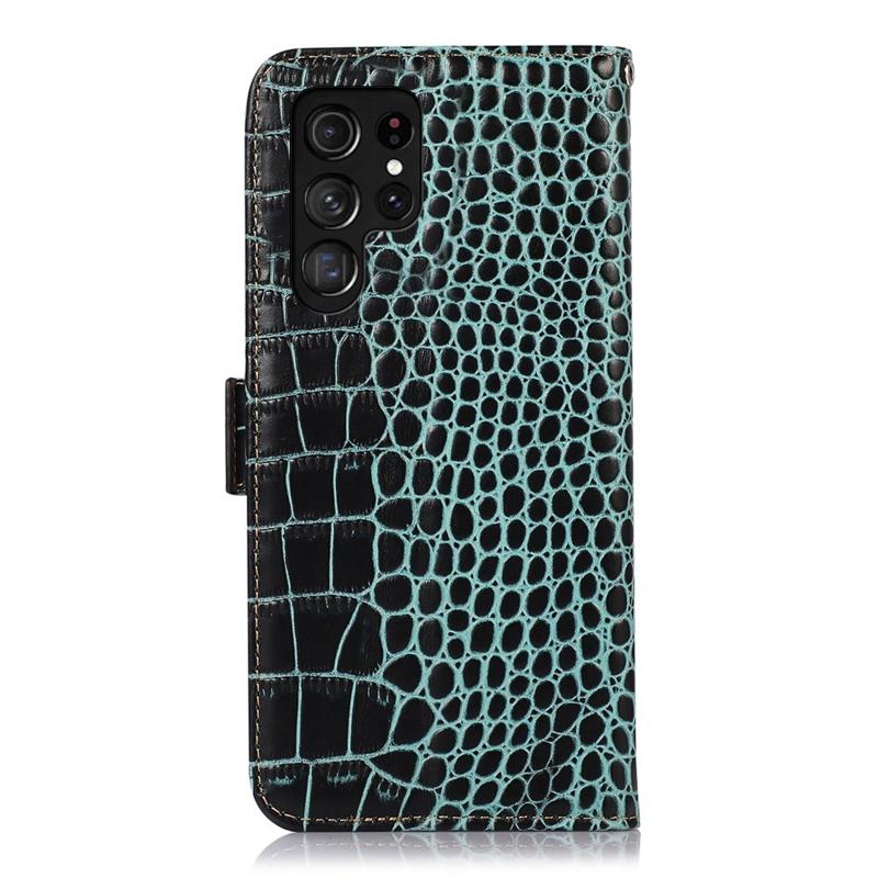 Crocodile Serie Samsung Galaxy S23 Ultra 5G Lederhülle mit Geldbörse mit RFID - Grün