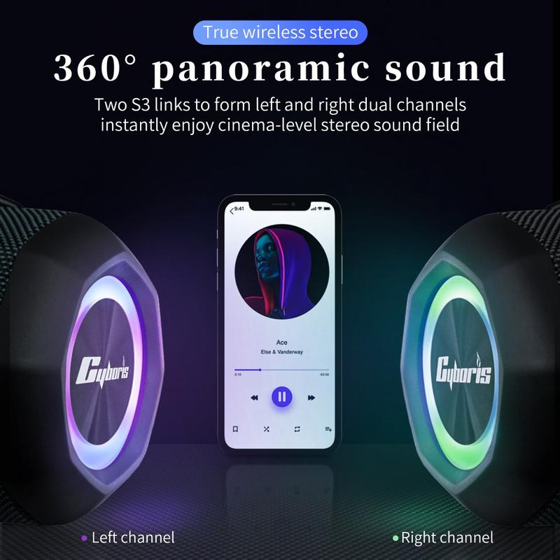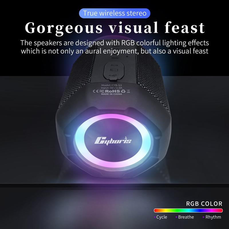 CYBORIS CYB-S3 Bluetooth 5.1 Wireless Lautsprecher 24W Beeindruckender Sound Stereo Bass 18Hrs Spielzeit RGB Licht Subwoofer Sound Box - Schwarz