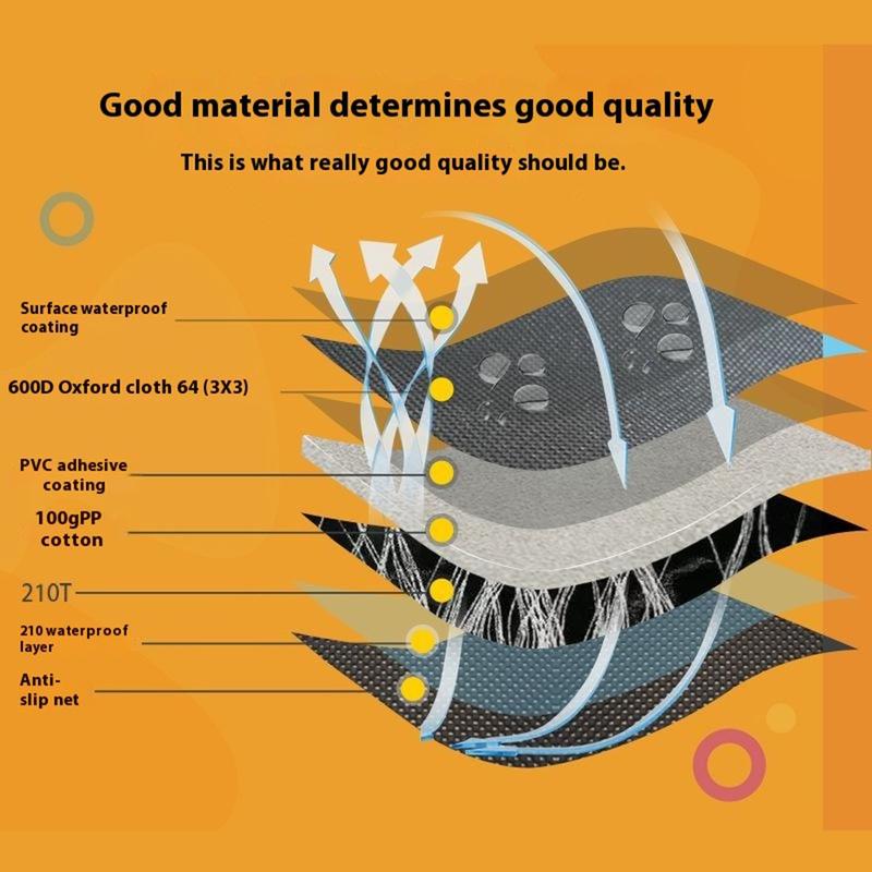 - Langlebige Konstruktion: Vierschichtiger Schutz mit 600D Oxford-Gewebe, PVC-Beschichtung, PP-Baumwolle, einer wasserdichten 210D-Schicht und einem rutschfesten PVC-Gummi-Netzboden für verbesserte Haltbarkeit.