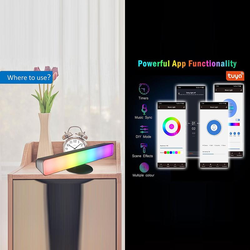 D04 RGB Smart LED-Lichtleiste mit Fernbedienung - Musik-Sync-Mikrofon, 16 Millionen Farben, App-Steuerung, Timer, USB-Stromversorgung (5 V/10 W) - Desktop-Umgebungsbeleuchtung
