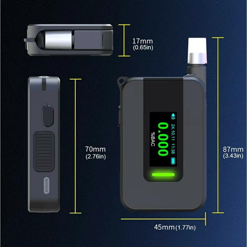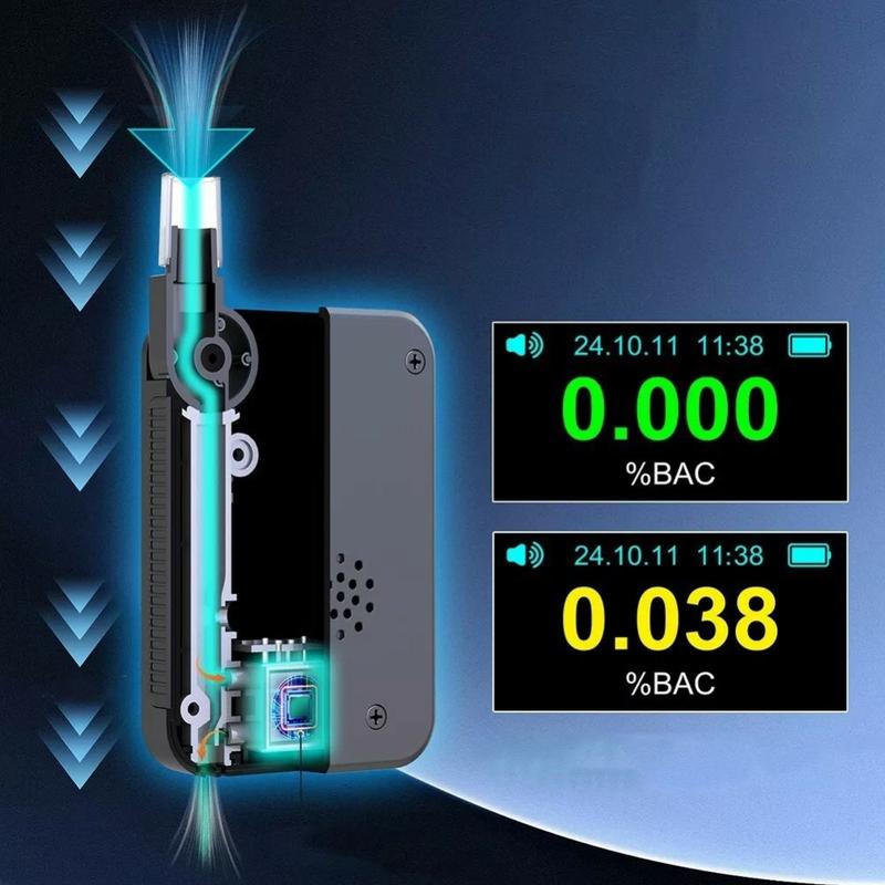 - Der fortschrittliche elektrochemische Sensor filtert Verunreinigungen und liefert zuverlässige Blutalkoholwerte in Sekundenschnelle