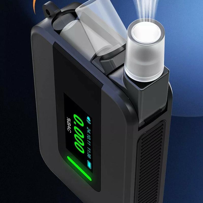 Kompakter, faltbarer Alkoholtester, der schnelle und genaue Messwerte und mehrsprachige Sprachanweisungen liefert, wo immer Sie sie brauchen.