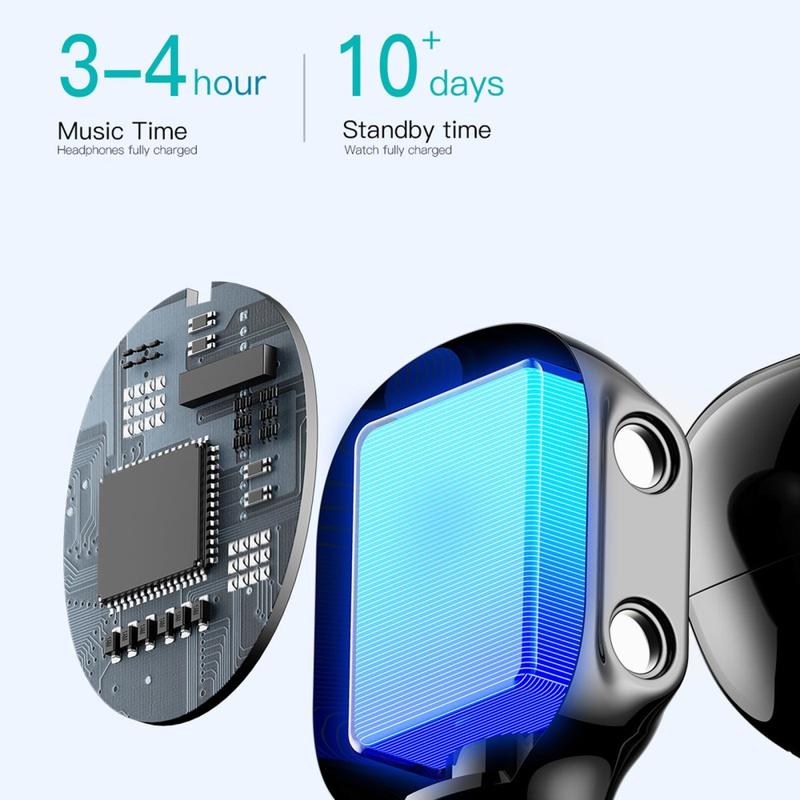 - Intelligentes 2-in-1-Design - Kombiniert eine Smartwatch und abnehmbare Bluetooth-Kopfhörer, so dass Sie Ihre Fitness, Anrufe und Musik von einem Gerät aus steuern können.